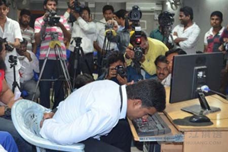 印度人一男子創(chuàng)下用鼻子打字最快的吉尼斯記錄。